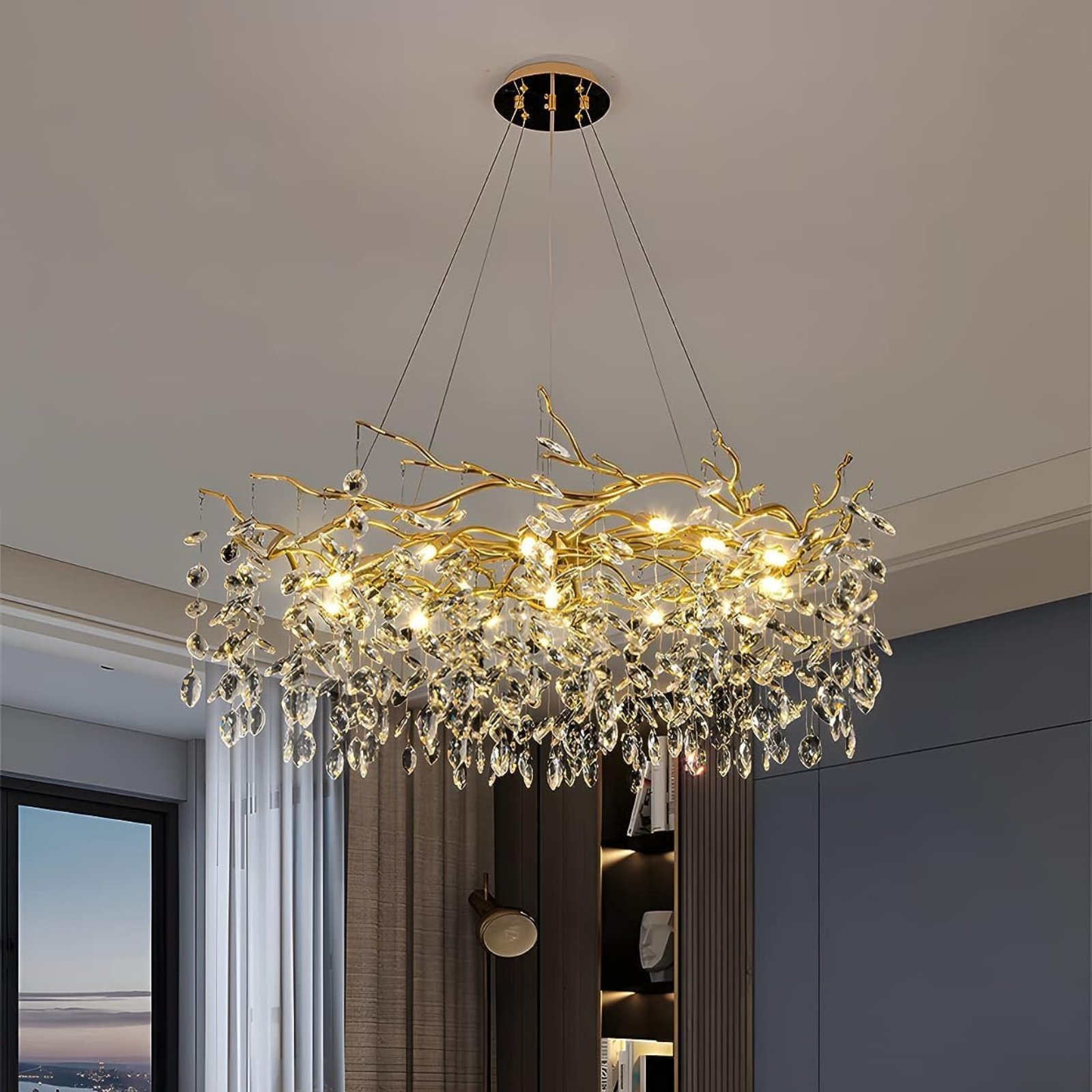 Elevate your home lighting with the Modern Tree Branch Crystal Chandelier Dimmable Raindrop Lighting, now available across the UAE from Sparkle and Shine UAE. This stunning dimmable crystal chandelier combines luxe gold-finish metalwork with cascading raindrop crystals for a dazzling centerpiece. Ideal for villas, lofts, living rooms, and grand entrances, this fixture reflects refined taste. Professional installation service is available across the UAE for this product.