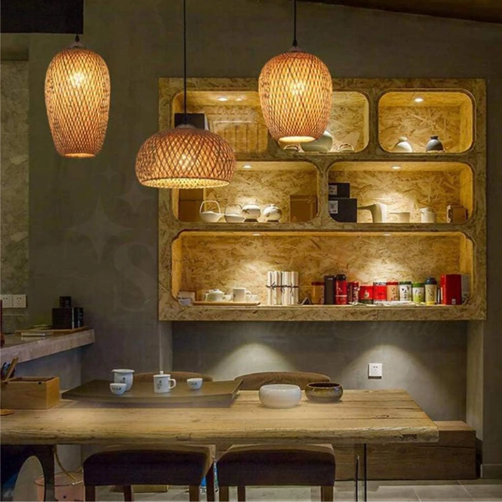 Every piece of bamboo in this lamp is hand-woven by skilled artisans, giving each fixture a one-of-a-kind texture that machine-made products simply cannot match. The combination of metal, bamboo, and rattan creates a sturdy yet lightweight bamboo light shade that filters light beautifully, casting soft, natural patterns across the room. The industrial retro styling makes it a strong fit for modern minimalist homes, boho-inspired interiors, and commercial spaces like restaurants and boutique hotels across Dubai.